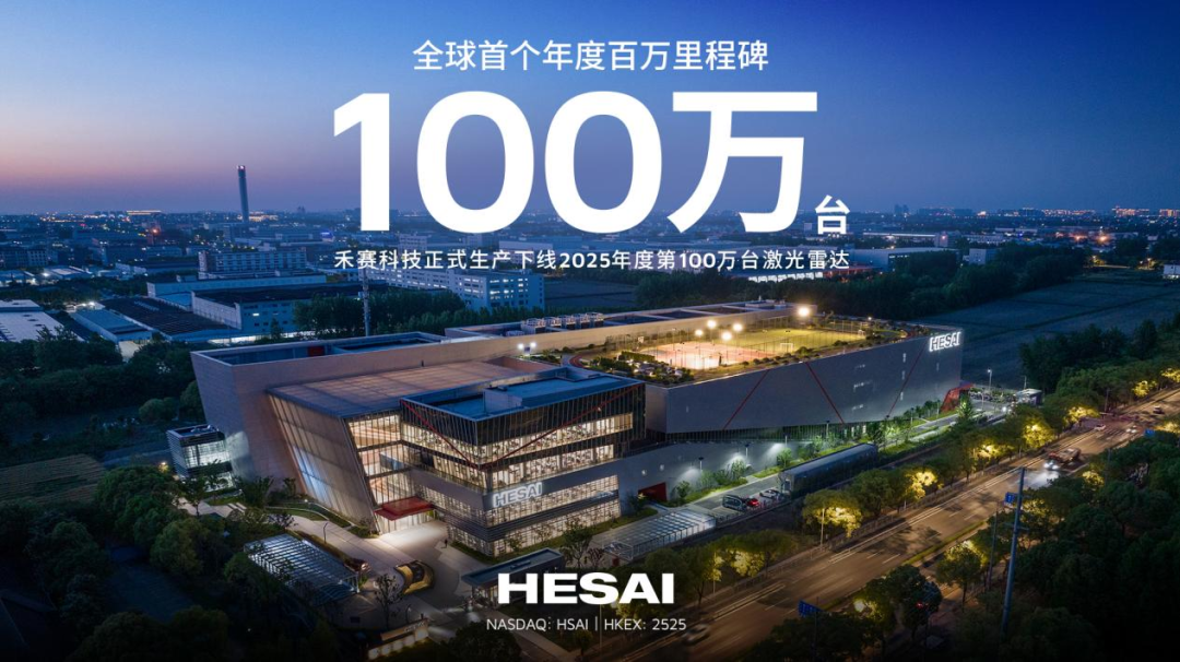 禾赛科技宣布,其 2025 年度第 100 万台激光雷达已于 9 月底正式下线。